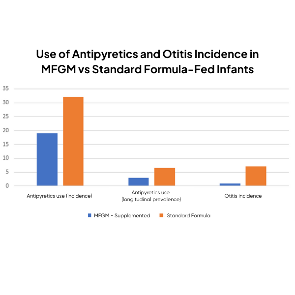 MFGM-supplemented formula also showed a reduced incidence of acute otitis media (ear infection) and subsequently, less use of pharmaceuticals in the form of antipyretics, in infants in Sweden (Timby et al, 2015)